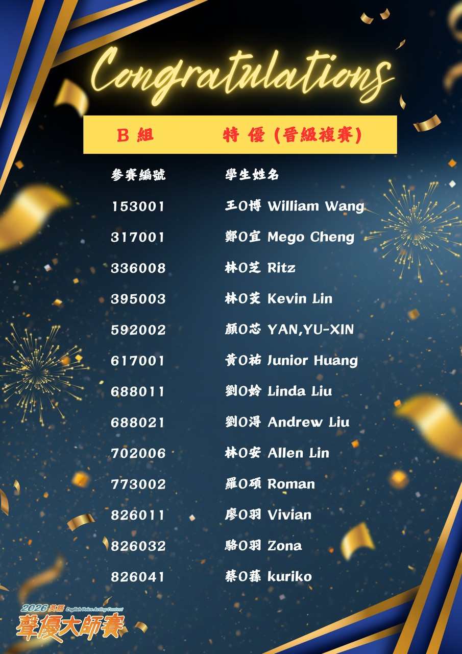 恭喜所有用心練習、勇敢參賽的同學們,每一次開口都是實力累積,每一份作品都值得被肯定!![]()